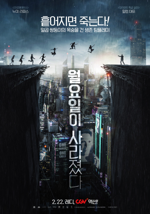 현재, 우리나라는 저출산 문제로 위기라는 소리가 나오고 있습니다. 이런 상황에서 30년 후에는 인구 과잉이라는 설정이 흥미롭게 다가왔습니다. 이러한 설정을 기반으로 일곱 쌍둥이와 각각의 이름을 요일에 붙였다는 것이 신선했습니다. 그리고 30년 후라는 상당히 먼 미래의 설정에서 과학기술이 상당히 많이 발전하여 자동차가 날아다니고 많은 것이 발전한 사이버펑크 한 느낌을 기대했었는데 영화에서 그려지는 사회의 전체적인 분위기는 어두우면서 개개인이 사용하는 제품들의 기술 발전이 많이 상승한 설정이었습니다. 그리고 미래가 되어서도 인구과잉이라는 사회적 문제를 개인의 이득으로 사용하려는 정부 관료들의 모습에서는 결국 이 세상은 사람이 살아가는 세상이고 미래에도 자신의 이익을 먼저 추구하려는 인간의 모습은 바뀌지 않는 것을 얘기하는 것 같았습니다. 이런 내용적인 부분 외에도 배우들의 연기, 배경음악과 액션 장면 등 디스토피아적이면서도 세련된 느낌의 영화였습니다. 그리고 아기 때부터 다 같이 교육을 받고 같은 환경에서 자란다고 해도 개개인의 개성과 성격은 티가 나는 법이고 그것을 통제하는 것은 불가능에 가깝다는 것을 말해주는 것 같았습니다.